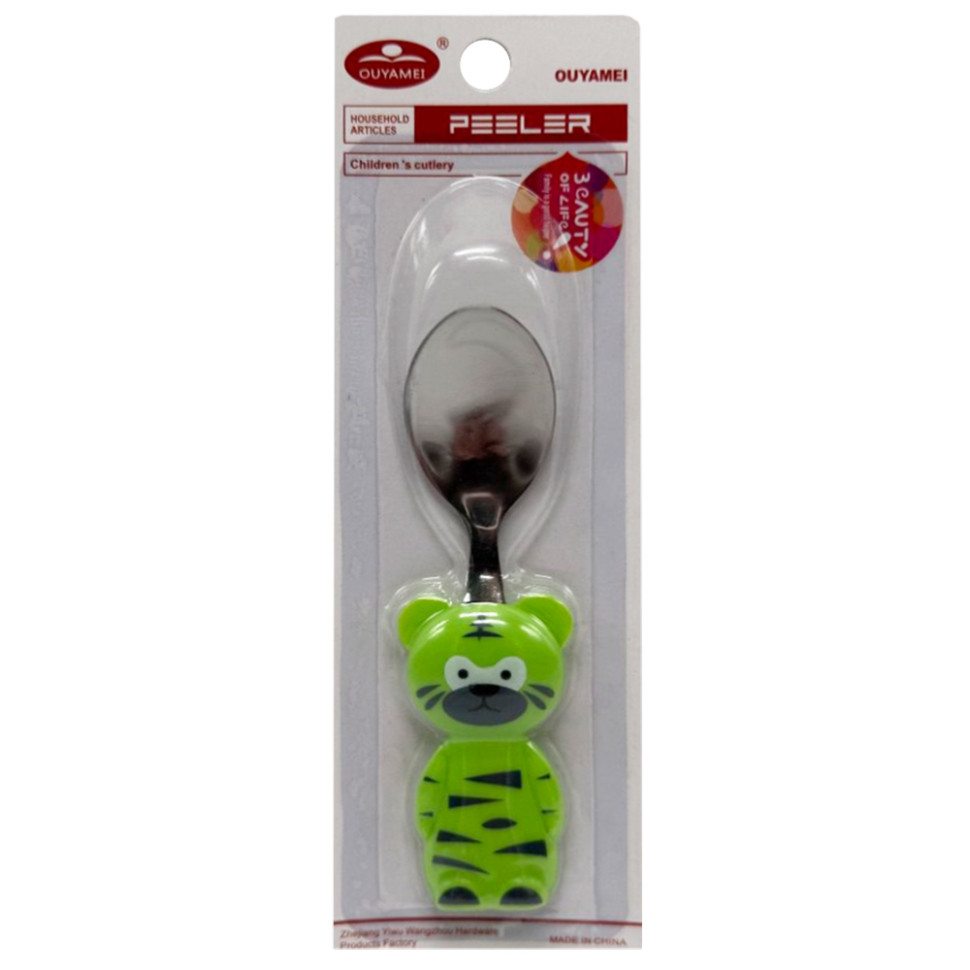 Металлическая ложка с зверушками - это прекрасный вариант для малышей постарше. С помощью таких приборов ему будет легко и интересно учиться есть самостоятельно. А главное, что прибор выглядит как взрослый, но рукоятка в виде зверушки будет привлекать внимание малыша, и он будет с удовольствием есть такими милыми и яркими приборами.Преимущества:- Приборы выполнены из безопасных материалов;- Не содержат токсичных материалов;- Будет удобно держать вилку в руке, а сам черпачок и вилочка пропорциональны рту ребенка;- Яркие и привлекательные дизайны;- Они хорошо моются и прослужат долго;- Дизайн в форме: зайчика, тигра и лягушки;- Цвета: синий, красный и зеленый.Характеристики:- Материал - металл;- Материал рукояти - безопасный пластик;