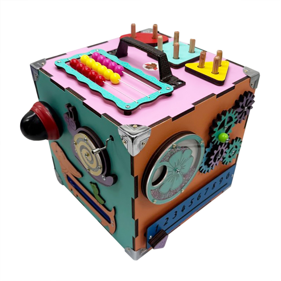 Бизикуб — это уникальная развивающая игрушка для малышей. Созданный по методике Монтессори кубик улучшает моторные навыки, которые играют ключевую роль в развитии ребенка. Ведь на пальцах и ладонях расположены нервные окончания, напрямую связанные с центрами головного мозга, отвечающими за память ребенка, его внимание и мышление, координацию глаз и движений, навыки концентрации и воображения, а также речевые способности малыша. А как правильно выбрать бизиборд, советуем посмотреть здесь.Преимущества:Развивает у ребенка творчество и воображение, раскрывает способности и талантыПривлекает детей больше, чем смартфон и телевизорРазвивает концентрацию и терпение — успокаивает малышаУчит решать сложные задачи, ориентироваться в бытовой среде и быть самостоятельнымРазвивается мелкая моторика и концентрация внимания. Нейронные связи мозга формируются до 2 раз быстрее. Эффективность бизибордов признана передовыми психологами!Изготовлен из гипоаллергенного материала и является экологически безопасным для здоровья ребенка!Вся продукция сертифицирована!Бизикуб имеет много интересных деталей, способствующих всестороннему развитию ребенка. Он изготовлен из качественных, безопасных материалов, прошедших все необходимые сертификации. Все части, включая подвижные элементы, прочно закреплены, что гарантирует надежность и безопасность игрушки.Характеристики:Материал: ФанераКоличество составных элементов: 15Длина: 230 ммШирина: 230 ммВысота: 230 ммТолщина: 6 ммВес: 2000 гБизикуб не только развлекает, но и учит, помогая ребенку в игровой форме развивать важные жизненные навыки. Благодаря своей многофункциональности и безопасности он станет незаменимым помощником в развитии вашего ребенка дома или в дороге.Функциональность:Счетные палочки знакомят ребенка с базовыми математическими концепциями и развивают аналитические навыки.Массажер для развития тактильного восприятия.Лабиринтик — тренирует внимание, концентрацию и навыки решения проблем.Застежки, взаимодействие с которыми помогает ребенку улучшать координацию движений рук и пальцев, что является важным компонентом для будущих навыков письма и других точных манипуляций.Мы добавили розетку и выключатель на кубик, чтобы ребенок мог безопасно знакомиться с бытовыми предметами.Спинер, с помощью которого будет развиваться моторика пальцев.
