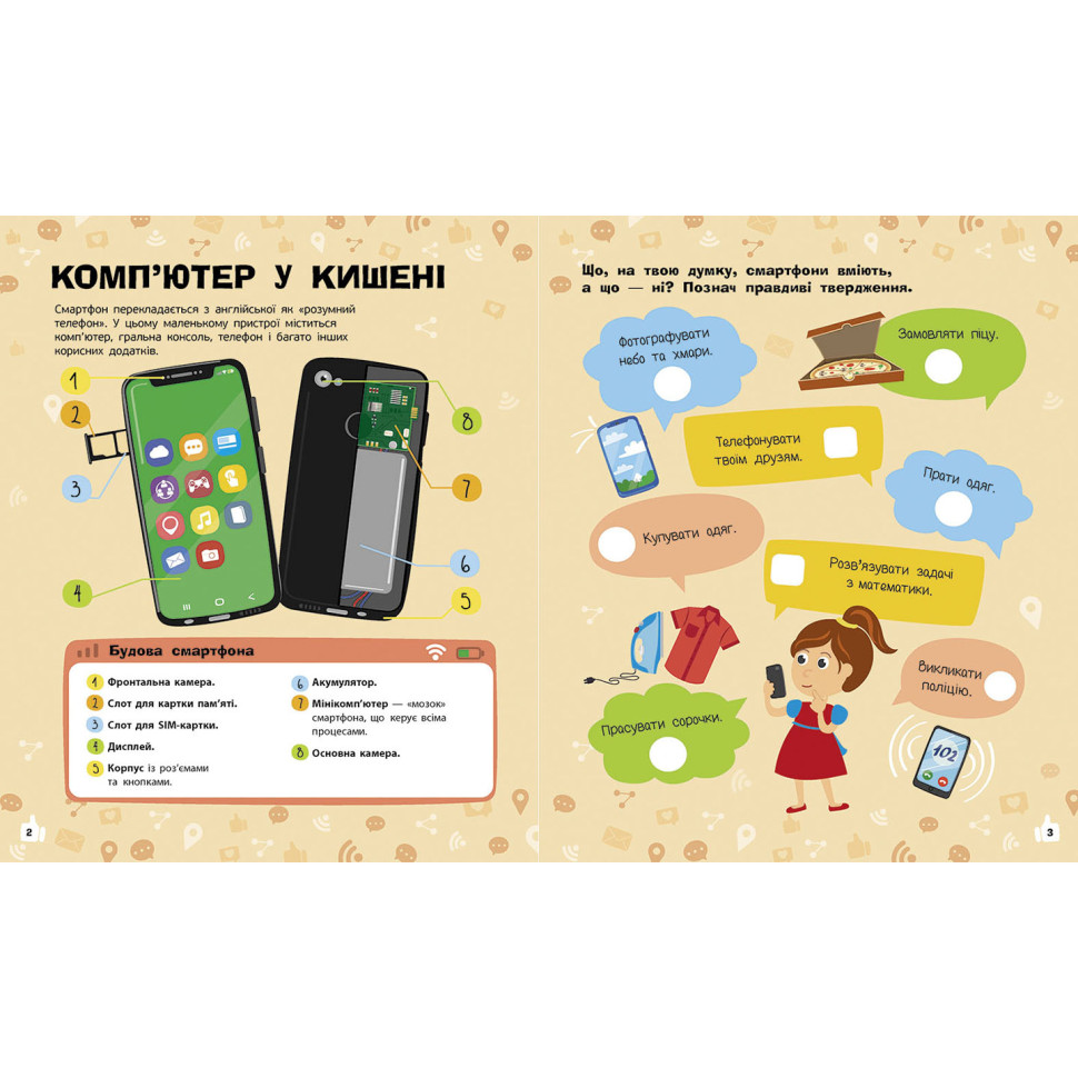 Эти книги мега-познавательно-технологичны: здесь смартфоны, компьютеры, работы и интернет рассказывают о том, как они работают. В книгах соединены факты-интересы, активити и наклейки.