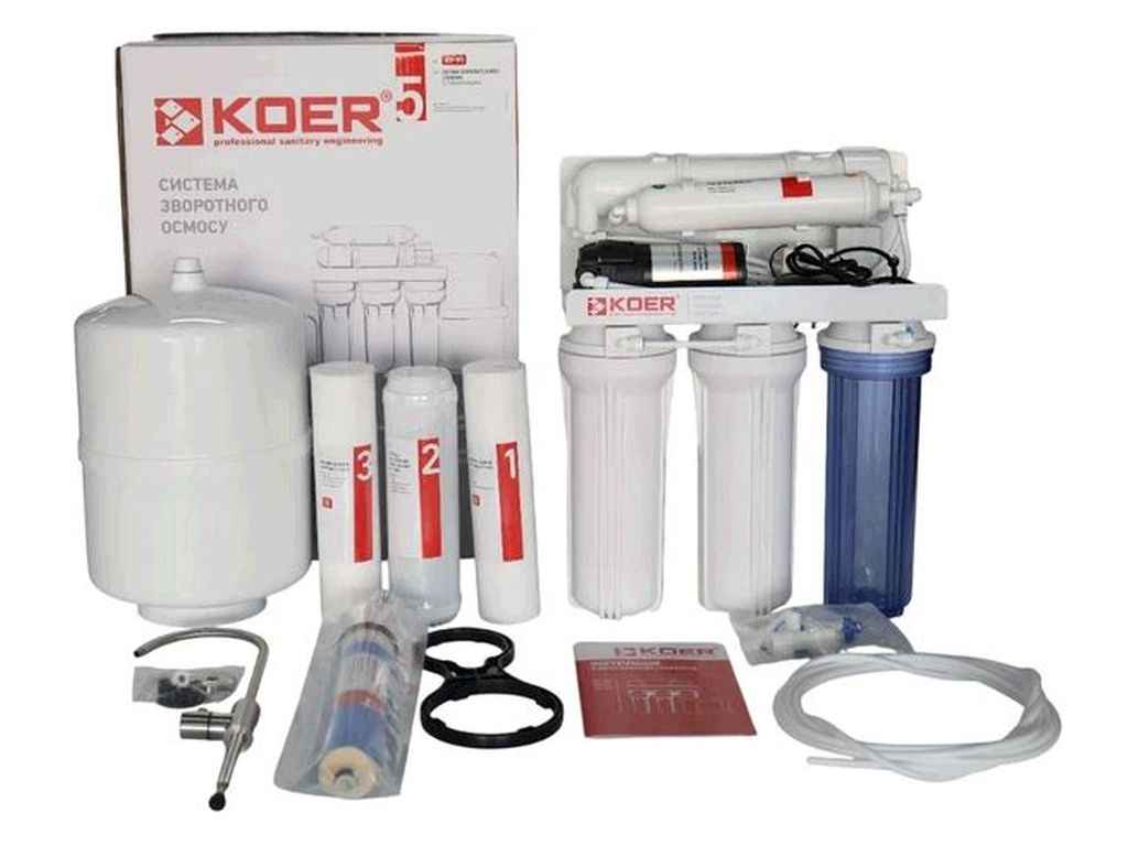Характеристики Система зворотного осмосу KOER KV-91 5 ступенів/насос/мембрана 75 галон (KR5327)