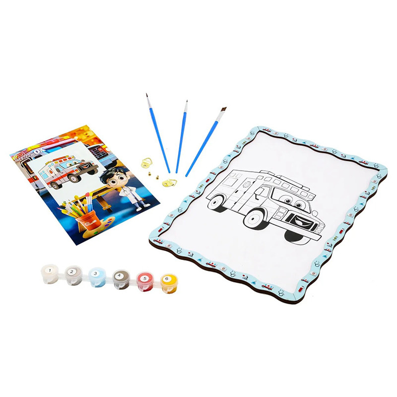 Детский набор для росписи по дереву "Медицинская машина" Puz-22955 формат А4. Изображение №2 Детский набор для росписи по дереву "Медицинская машина" Puz-22955 формат А4. Изображение №3