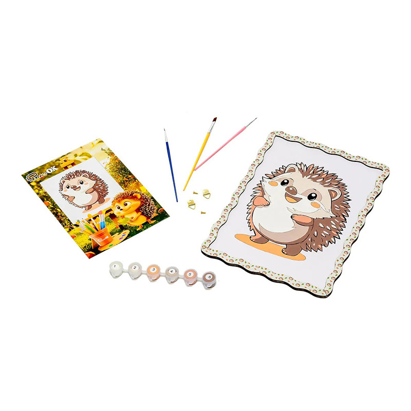 Набор для росписи, картина по номерам «Ежик»Материал: ХДФРазмер: А4 форматКомплектация: кисточка (3шт), краски (6 шт)