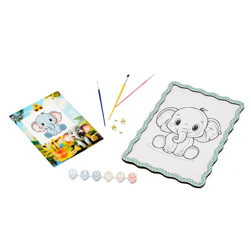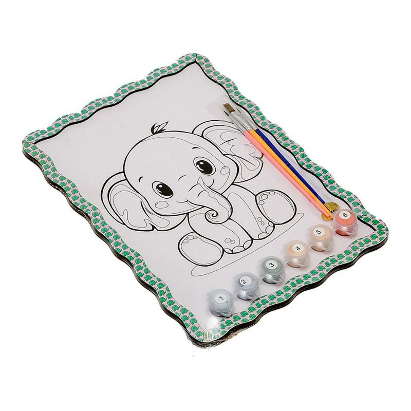 Набор для росписи, картина по номерам «Слоник»Материал: ХДФРазмер: А4 форматКомплектация: кисточка (3шт), краски (6 шт)