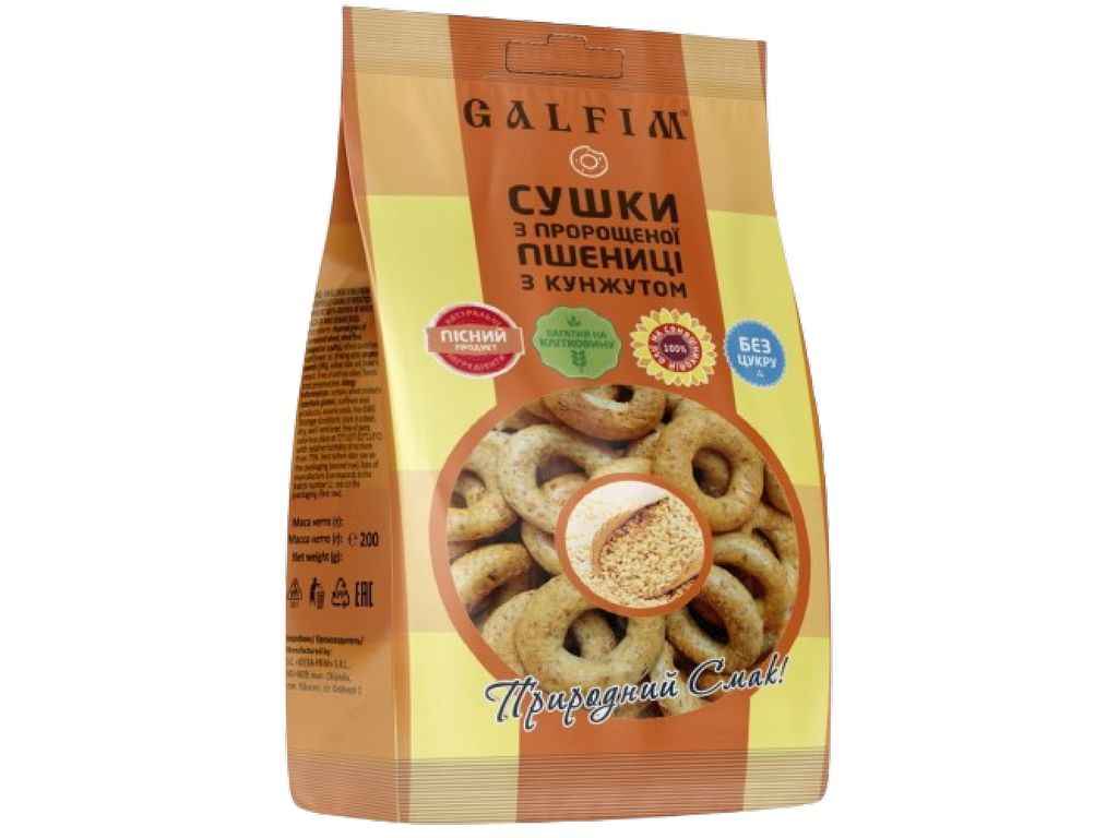 Сушка 200г з пророщеної пшениці з кунжутом ТМGalfim