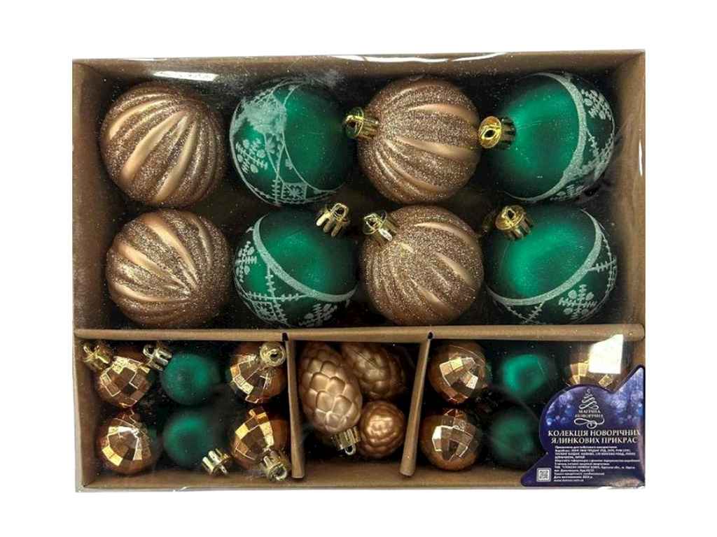 Набір ялинкових куль 3-6см зелений 36шт/наб арт.9568 ТМSTENSON