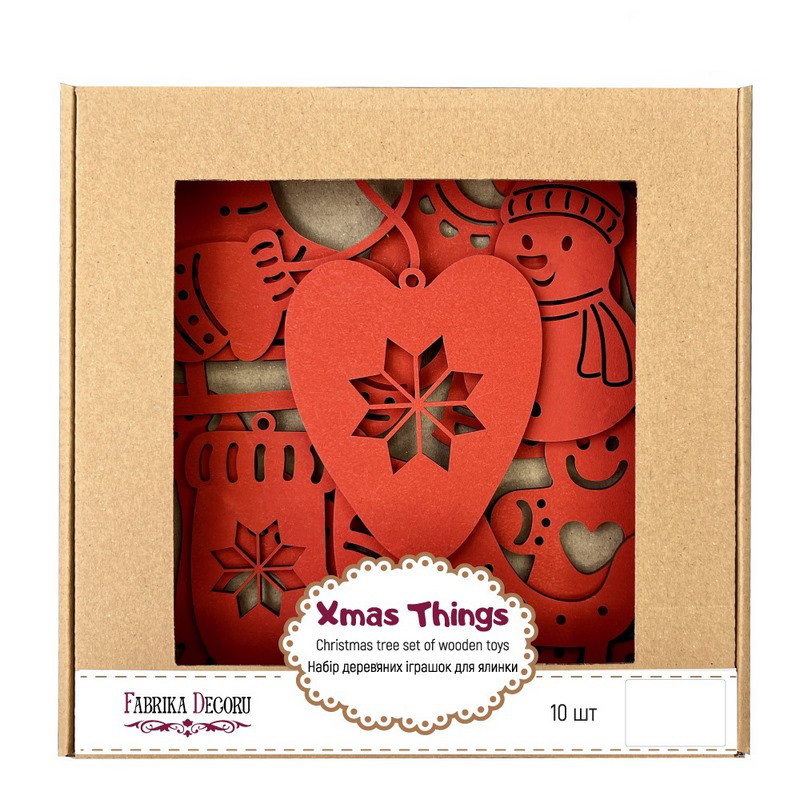Набор елочных украшений "Зимние атрибуты", 10штУкрасьте свой праздник с помощью елочных украшений в модном сегодня этно стиле! Изготовленные из 3-мм HDF (плотного, древовидного материала), элементы в наборе представлены на выбор:в традиционном матовом красном цвете (2-е стороны),белом ламинированном (2-е стороны)базовой версии для дальнейшего раскрашивания и росписи.Этими забавными фигурками Вы сможете украсить елку сразу, или дополнительно оформить их по своему вкусу. Данный набор дарит широкие возможности для творчества и станет замечательным холстом для создания красивых зимних декораций. Вы можете раскрасить заготовки художественными материалами Fabrika Decoru. Используйте матовые акриловые краски или с эффектами, такими как металлик, хамелеон, рустик или шебби, чтобы создать яркий, оригинальный образ. Помимо красок, текстурных паст и других микс медиа продуктов, для оформления можно также использовать искусственные веточки, ягодки, блестки, глиттер, искусственный снег. Для вдохновения или наглядного пособия, Вы можете обратиться к урокам из нашего блога или видео мастер-классам, размещенным на YouTube канале Фабрики Декору.Немного времени и вдохновения - и Вы увидите, как елка оживает, приобретая сказочные акценты и особенный шарм. Набор предлагается в подарочной картонной коробочке с прозрачным окошком и может быть креативным презентом к Рождеству или Новому Году.