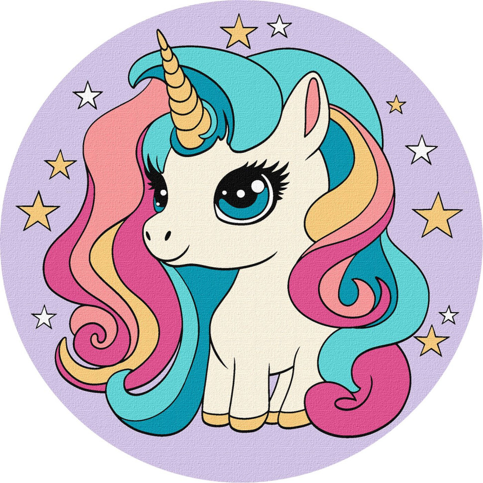 Картина по номерам "Непревзойденная единорожка" KHO-R1043 диаметр 19 см