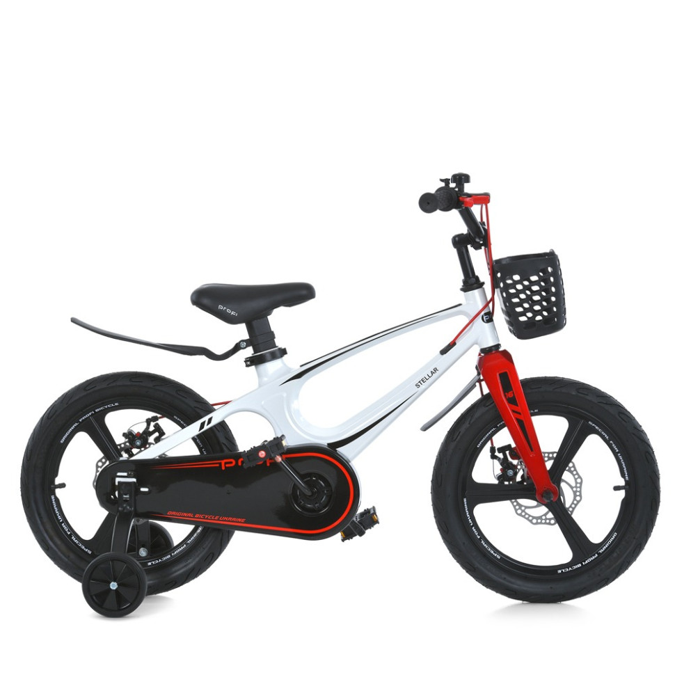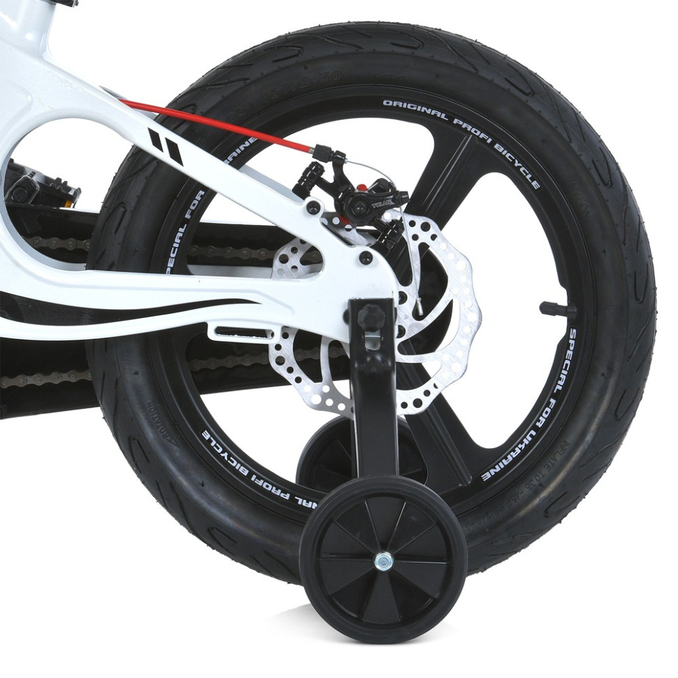 Размер колеса 16 дюймовРама/вилка МагнийРуль 1-болтовое крепление, окрашенная сталь. Высота min=69 см., max= 77 см.Рулевые накладки Прорезиненные грипсыСиденье Высота min= 57 см.,max= 66 см.Подседельный штырь треугольный, магний, регулируется по высоте, зажим: эксцентрикКаретка Разборная (насыпной подшипник)Система шатунов Одноэлементная со съемной звездойЗащита цепи Полная, пластмассаТормоза Передний: дисковый; задний: дисковыйКолеса Резина 16х2,125Обода МагниевыеПедали Пластмасса с боковыми катафотамиКрылья Переднее/заднее, пластмассаДоп. Комплектация Вспомогательные боковые колеса, звонок, корзинаВес 9,1 кг.2 КОЛЕСА ДЕТСКИЕРАЗМЕР КОЛЕСА (ДМ) РОСТ РЕБЕНКА (СМ) ВОЗРАСТ12 ОТ 86 ДО 110 2-414 ОТ 98 ДО 116 3-516 ОТ 104 ДО 122 4-618 ОТ 110 ДО 128 5-720 ОТ 116 ДО 134 6-924 ОТ 127 ДО 142 7-1126 ОТ 140 10+