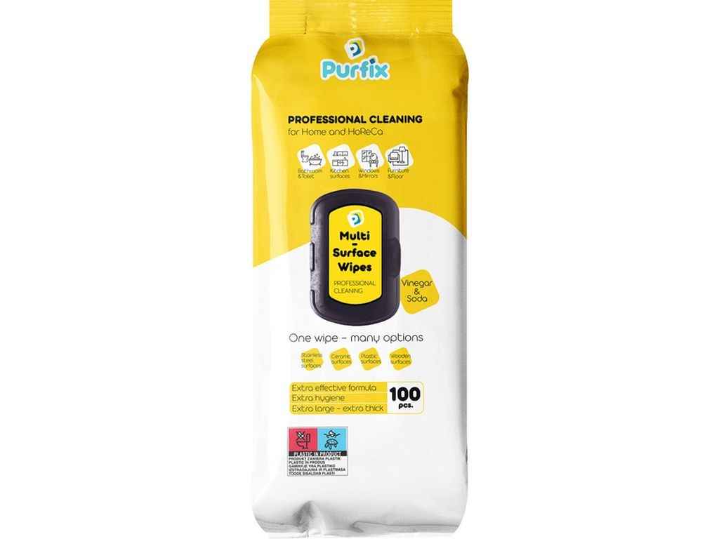 Серветки вологі для прибирання 100шт господарські Універсальні (клапан) ТМ PURFIX