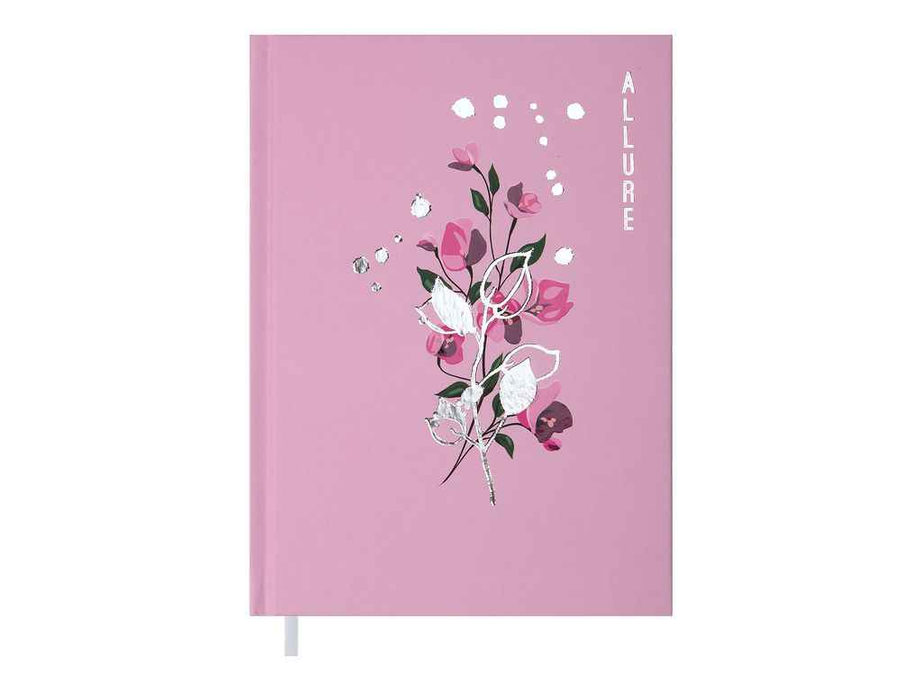 Тверда поліграфічна обкладинка з ламінацією soft touch щоденника ALLURE виконана у романтичному ніжному та стильному дизайні. Гармонійно доповнює дизайн елегантний напис на лицьовій стороні обкладинки.