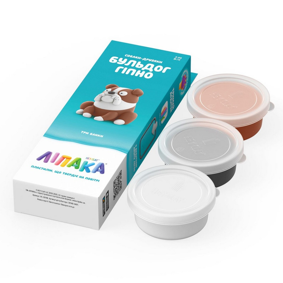 Набор пластилина, который самостоятельно затвердевает, ЛИПАКА – СОБАКИ-ДРУЗЬЯ: БУЛЬДОГ ГИПНО – развлечет и малышей, и взрослых. С помощью анимационных инструкций в приложении HEY CLAY, Вы сможете слепить собаку. А благодаря компактным размерам, набор удобно брать с собой. Пластилин затвердевает на воздухе в течение 24 часов, после чего можно играть созданными фигурками.В набор входит 3 баночки пластилина разного цвета.В набор может входить до 3 разных цветов (баночка может содержать пластилин двух разных цветов).Размягчите пластилин перед лепкой!Из пластилина, входящего в набор, можно создать 1 героя, изображенного на упаковке и описанного в инструкции (приложении).В каждом наборе Вы найдете код для доступа к соответствующим героям в приложении ЛІПАКА HEY CLAY с анимационными инструкциями.Пластилин ЛІПАКА – это не просто наборы пластилина. Это интерактивные развивающие наборы с кодом доступа к приложению ЛІПАКА HEY CLAY, которое в игровой форме научит малышей лепить любимых героев. HEY CLAY – это уникальное приложение с интуитивно понятным интерфейсом, забавной пластилиновой анимацией и инструкциями для малышей. Начиная с простых форм и движений, ребенок с легкостью создаст выбранного героя, освоит основные приемы и техники лепки. Что, в свою очередь, будет способствовать развитию креативности и побуждать к созданию собственных шедевров!Пластилин ЛІПАКА – это больше, чем просто лепка! Вместе с пластилином ЛІПАКА малыши развивают мелкую моторику, учатся концентрировать внимание, развивают креативность и кругозор.Пластилин абсолютно безопасен для детей, имеет приятную плотную структуру, не липнет к рукам, не имеет запаха и не оставляет пятен. Кроме того, пластилин ЛІПАКА самостоятельно затвердевает на воздухе в течение 24 часов, что позволяет играть созданными фигурками.Рекомендовано для детей от 3 лет.