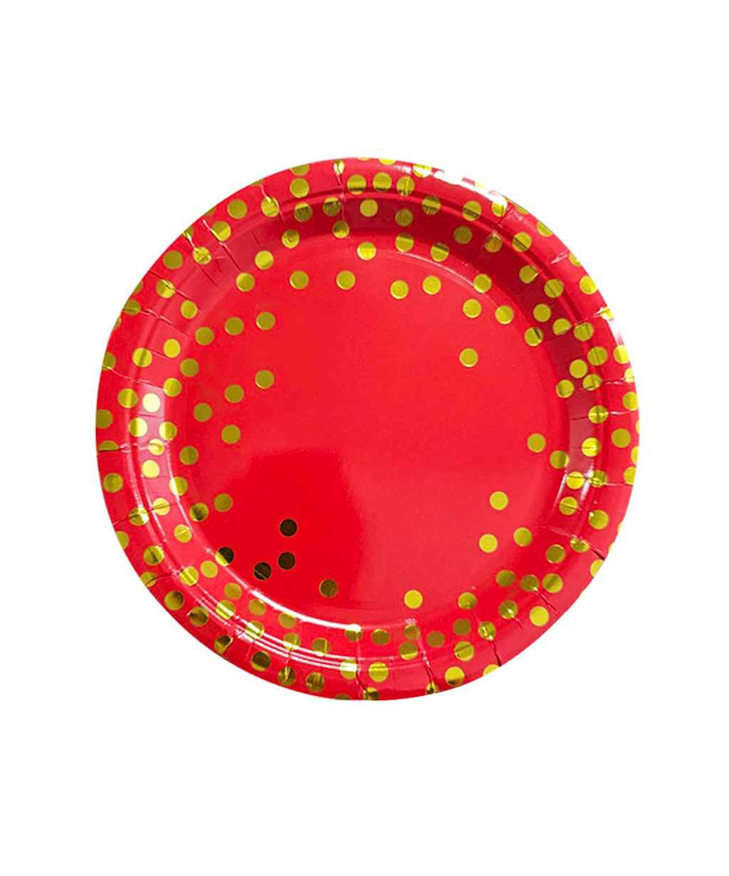 Тарілки 18см Червоні із золотим горошком 10шт/уп паперові #08 ТМPELICAN