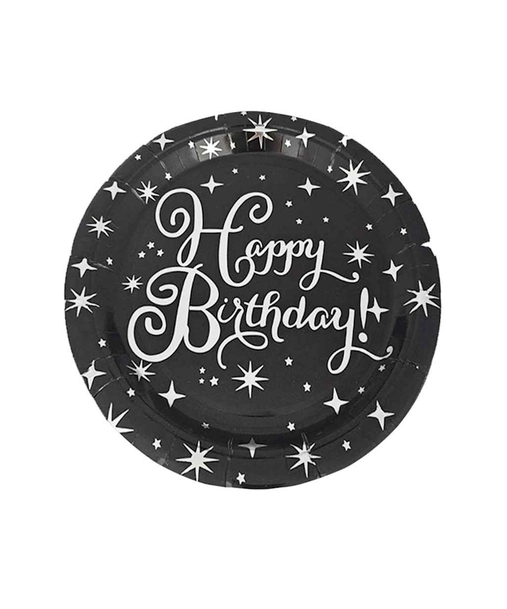 Тарілки Happy Birthday 18см чорні зі сріблом 10шт/уп паперові #21 ТМPELICAN