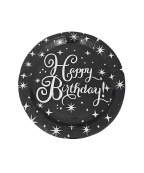 Тарілки Happy Birthday 18см чорні із золотом 10шт/уп паперові #22 ТМPELICAN