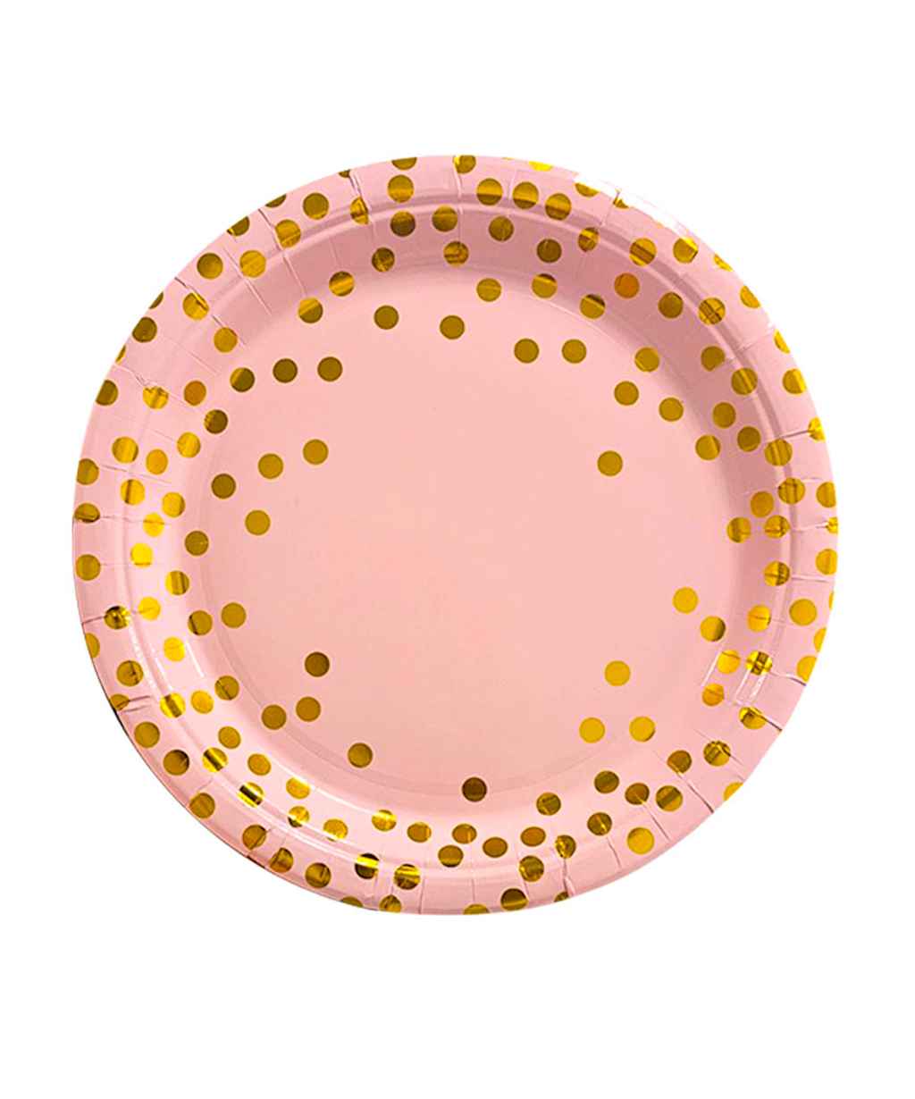 Тарілки 23см Рожеві із золотим горошком 10шт/уп паперові #09 ТМPELICAN