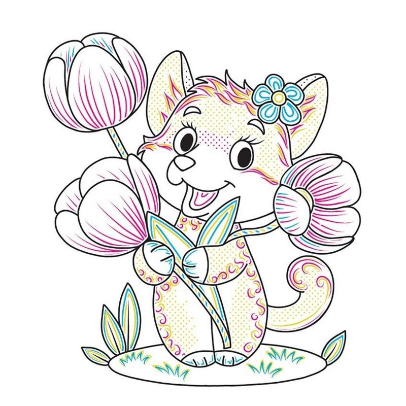 Подарите ребенку настоящий цветочный праздник! На страницах этой раскраски вы найдете множество ярких цветочков и милых зверушек, с которыми можно ярко и весело провести время. Скорее берите кисточки и воду и давайте раскрашивать мир вокруг! Краски уже есть на страницах, поэтому одежда останется чистой, а дети — довольными.