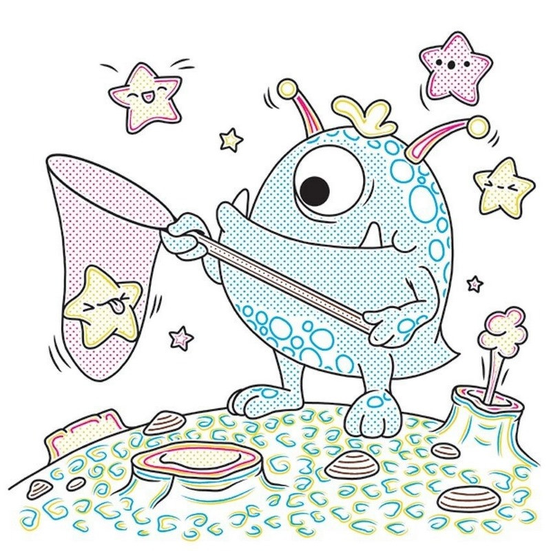 Пришло время малышам совершить первое космическое путешествие! На страницах этой раскраски уже ждут космические корабли, далекие галактики и даже удивительные инопланетные жители. И еще много яркого космического — стоит только все раскрасить! Краски уже есть на страницах, так что берите воду и кисточку — и вперед, покорять космос!