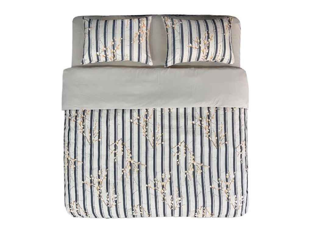Комплект постільної білизни виготовлено в комбінації малюнку та однотону з якісних матеріалів. Постіль підходить для сучасних інтер’єрів спальних кімнат та створює неповторну естетику.