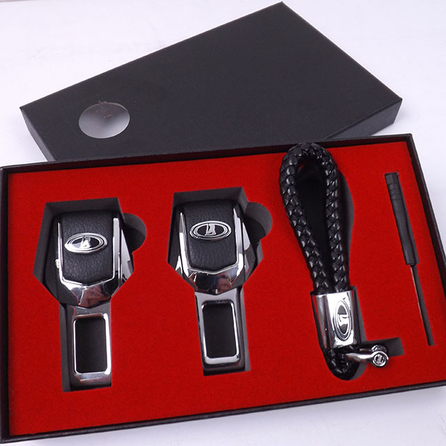Подарунковий набір LADA 2в1 (фіксатор ременів, плетений брелок) №2 хром