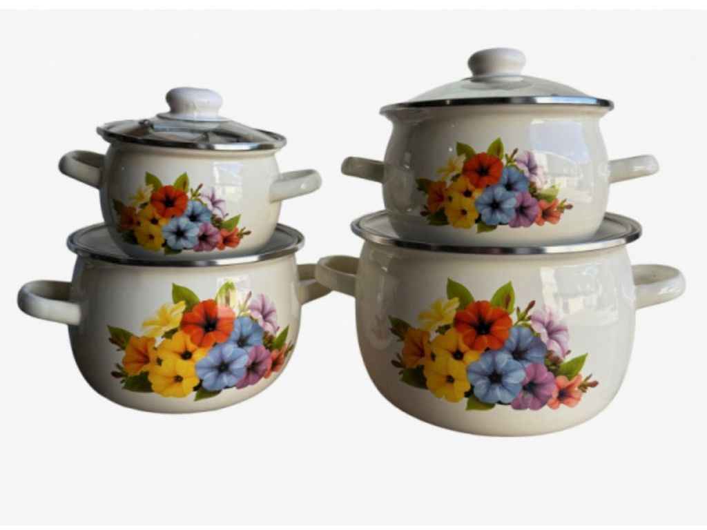 4 предмета Каструлі сферичні зі скляною кришкою 1,5 л - 1шт, 2,5 л - 1шт, 3,5 л - 1шт, 5 л - 1 шт.