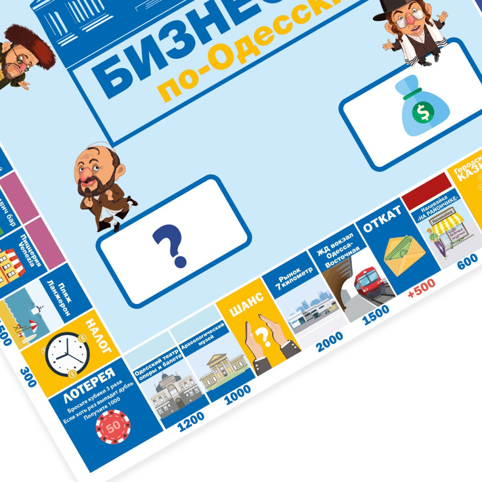 Настольная игра – монополия из серии игр «Бизнес», посвященная городу Одесса.В нем вы встретите известные компании города, сможете их купить и построить свой бизнес империю.Процесс игры насыщен веселыми, тематическими шутками в карточках «шанс» и «городская казна»Для кого это игра?Отлично подойдет для друзей, семьи, тимбилдинга, анти кафе и других развлекательных заведений.Бизнес по – Одесски включает в себя:– игровое поле– карты документ собственности– карты шанс– карты казна– игровые деньги– кубики и фишки– стикеры филиалов– правила игрыКоличество игроков: от 2 до 5 человекВремя игры: 45 мин – 2 часа