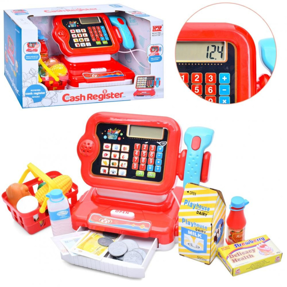 Детский игровой кассовый аппарат 6178F калькулятор, сканер, звук, свет, корзина. Изображение №2 Детский игровой кассовый аппарат 6178F калькулятор, сканер, звук, свет, корзина. Изображение №3 Детский игровой кассовый аппарат 6178F калькулятор, сканер, звук, свет, корзина. Изображение №4