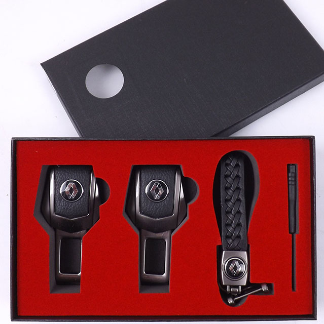 Подарунковий набір RENAULT 2в1 (фіксатор ременів, шкіряний брелок) №2 графіт