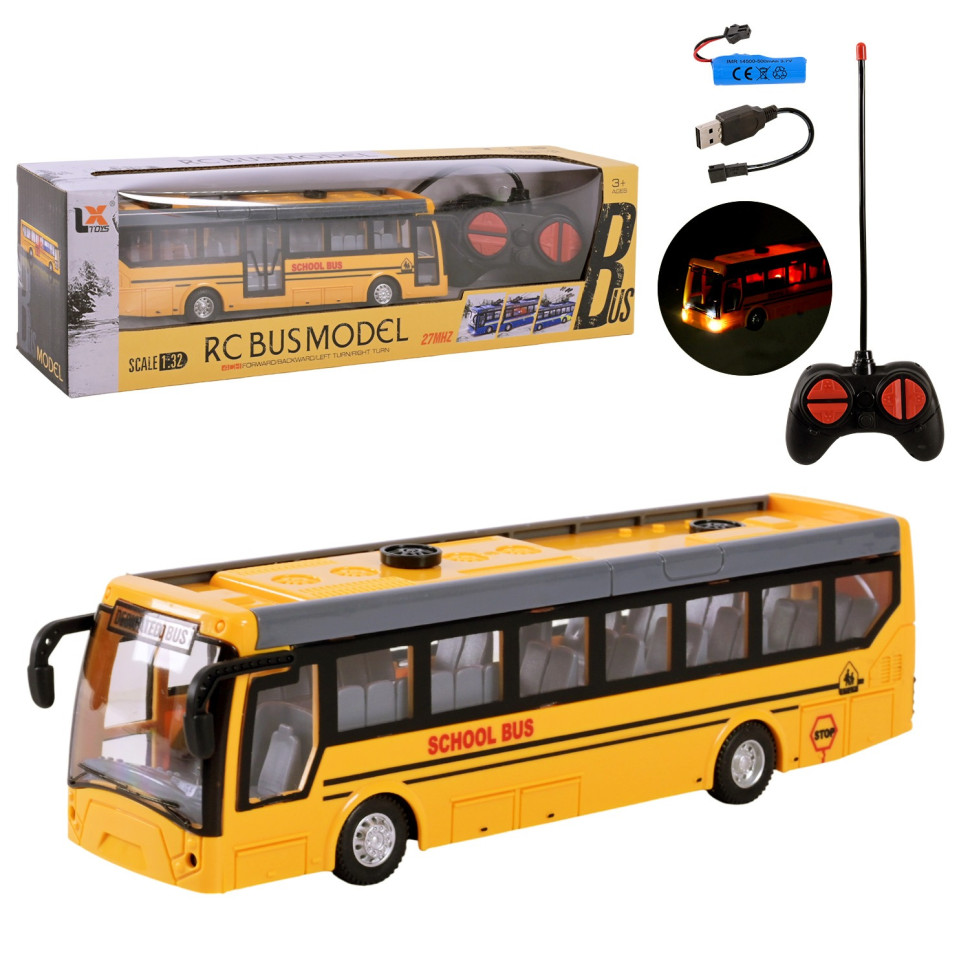 Радиоуправляемый школьный автобус — это настоящая находка для маленьких любителей транспорта! Точная миниатюрная копия настоящего транспорта, которая подарит ребенку море ярких впечатлений и эмоций. Ребенок сможет почувствовать себя настоящим водителем городского транспорта и использовать в сюжетно-ролевых играх.Комплектация:• Радиоуправляемый автобус;• Аккумулятор и USB-кабель для зарядки;• Пульт управления.Интерактив:• Яркая подсветка фар и салона, что делает игру еще более эффектной даже в темноте.Особенности:• Игрушка имеет очень реалистичный и детализированный дизайн, благодаря которому игрушка выглядит как настоящий школьный автобус.• Автобус может ездить вперед, назад и поворачивать в разные стороны, а также может ездить по разным поверхностям.• Имеет масштаб 1:32, что удобно для игры как на улице, так и дома.• Такой автобус станет не только интересной игрушкой, но и прекрасным элементом коллекции транспорта для маленького автолюбителя.• Изготовлен из качественных и безопасных для ребенка материалов.Развитие: тренирует координацию движений, пространственное мышление и внимательность, развивает мелкую моторику и реакцию, фантазию.Пульт управления работает от 2-х батареек типа АА (не входят в комплект)Упаковка: коробка.