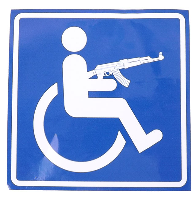 Наліпка Попереджувальна "Інвалід за кермом з рушницею"зовнішня велика14х14см синьо-біла (10 шт/уп)