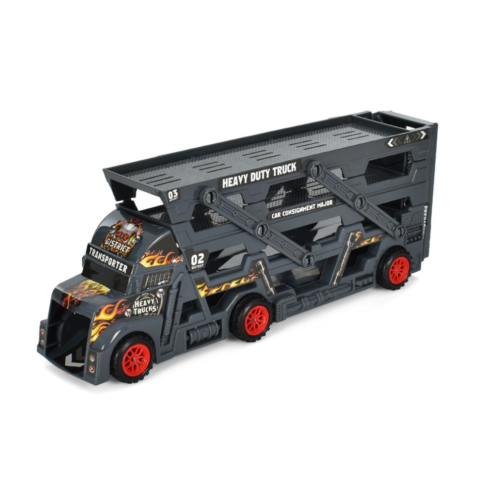 Это не просто трейлер, это целый игровой комплекс! Большой автовоз K180A20 (длина 45 см) способен не только перевозить автомобили, но и трансформироваться в увлекательный трек для запуска гоночных соревнований.