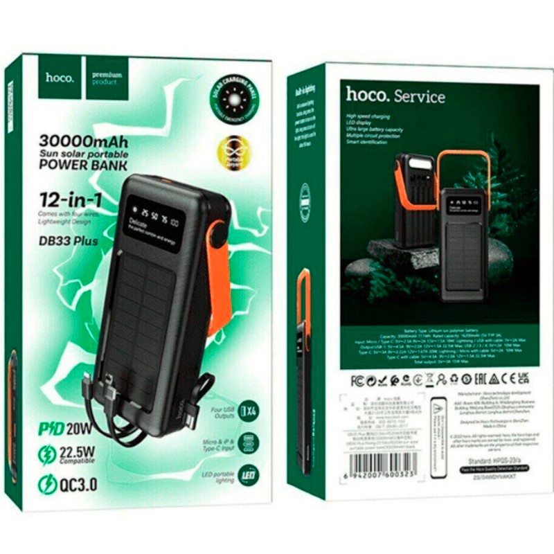 Портативна сонячна станція HOCO DB33 Plus Rising 22.5W+PD20W Sun Solar 30.000mAh Black