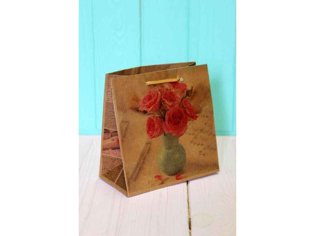 Пакет подарунковий крафт 15,5*15,5*8см №ПАК ЧШ-1054К ТМ УПАКОВКИН