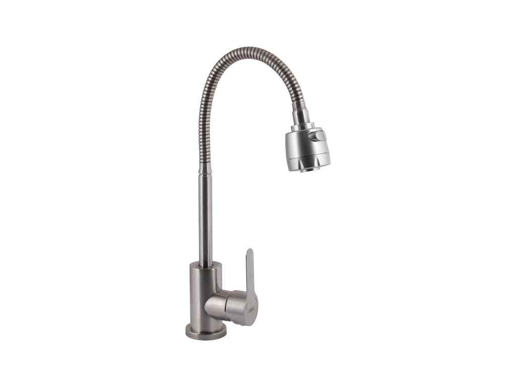 Опис: Змішувач для кухні Brinex Pure 015F41 із гнучким виливом Nickel – універсальне рішення для кухні. Гнучкий вилив дозволяє легко направити потік води в потрібне місце. Нікельове покриття стійке до пошкоджень та корозії. Надійний керамічний картридж забезпечує плавну роботу.