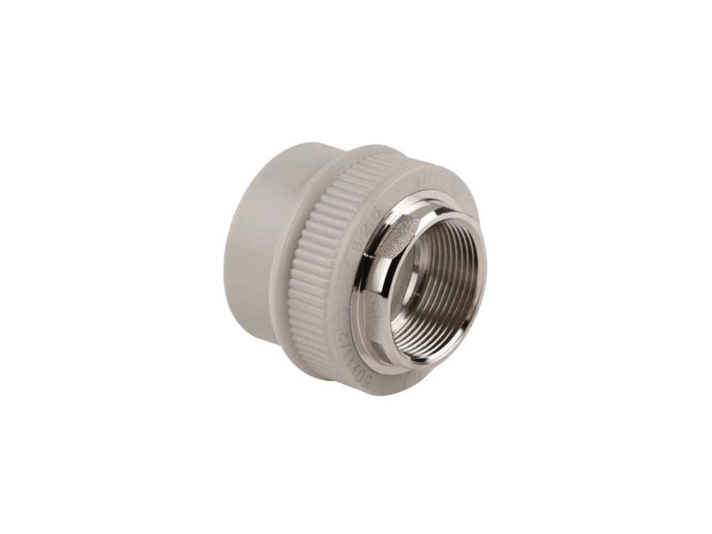 Опис: Муфта PPR Thermo Alliance 50х1 1/2 ВР зроблена з поліпропілену, вставка з півторадюймовою внутрішньою різьбою — латунна, з шестигранною ділянкою під гайковий ключ. Діаметр для зварного стикування з ППР-трубою становить 50 мм. Монтаж виконують методом поліфузної пайки в розтруб, зєднання герметичне, міцне й надійне. Такий фітинг — необхідна деталь для зєднання в одну систему трубопроводів з поліпропілену та елементів інженерних комунікацій с нарізним підєднанням.