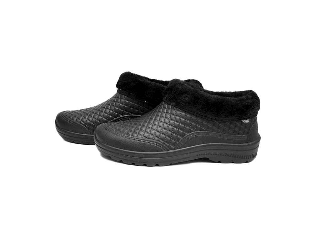 Калоші виготовлені з пінки ЕВА, Взуття з матеріалу ЕВА забезпечує ногам сухість і комфорт, відрізняється підвищеною міцністю і відмінно виглядає. Крім водонепроникності, моделі цієї серії мають невелику вагу і відрізняються різноманітністю варіантів виконання, а значить підходять до всіх випадків життя. Взуття EVA призначена для сирої холодної погоди і може використовуватися як в зимовий час, так і в весняно-осінній період.