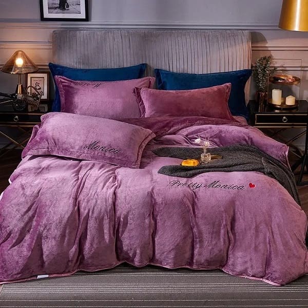 Комплект постільної білизни велюр Євро РР (Фіолетовий) Monika Сумка