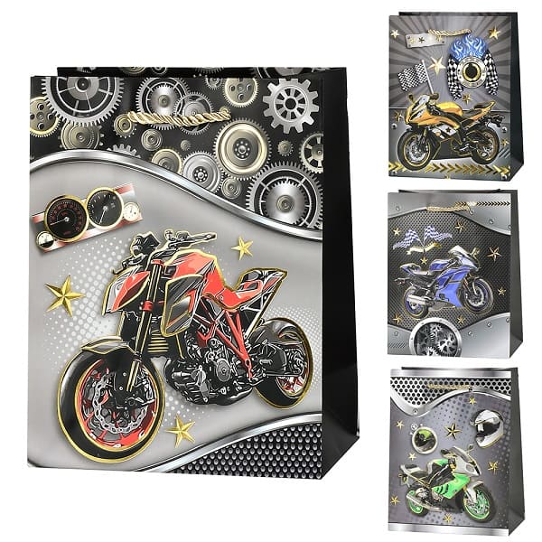 Пакет подарунковий паперовий M "Motorbike" 26*32*10см (12шт/уп)