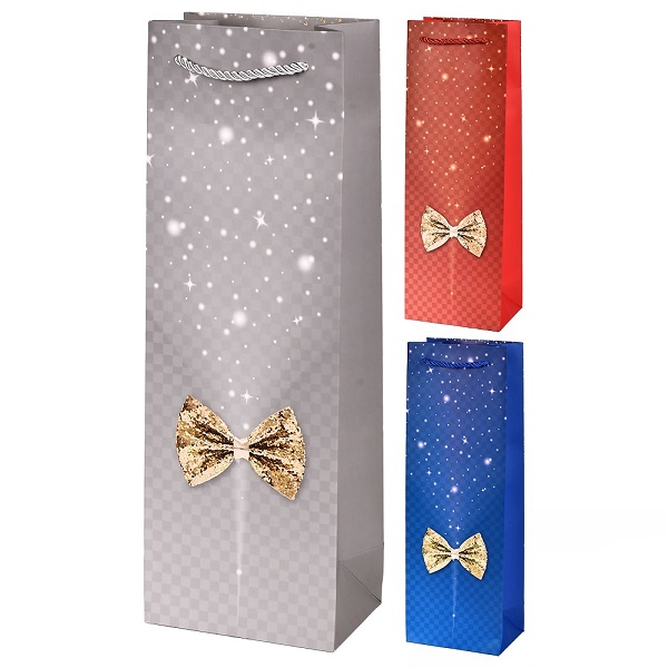 Пакет подарунковий паперовий під пляшку "Bow" 12.5*8.5*36см (12шт/уп)