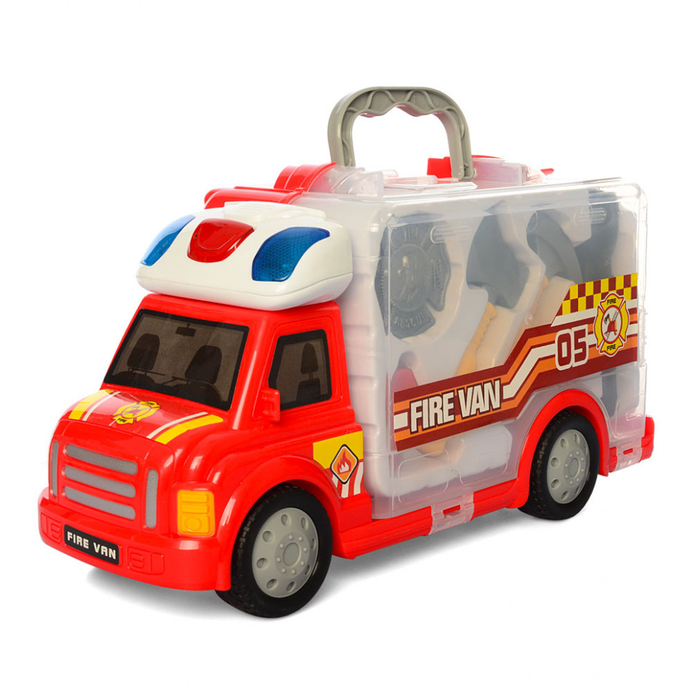 Компактный, функциональный набор машинка 661-175 Набор пожарника – продуманная до мелочей, увлекательная игра, рекомендованная для детей старше трех лет. Если Ваш малыш мечтает стать пожарным, то этот комплект не оставит его равнодушным. В наборе представлены все необходимые инструменты и принадлежности для сюжетно-ролевой игры и спасения пострадавших, включая молоток, топор, огнетушитель, фонарик, свисток и две рации. Для удобства хранения и переноски игрушки укомплектованы в виде удобного чемоданчика с эргономичной ручкой. Звуковое сопровождение и световые эффекты превращают игру в захватывающее приключение, делая ее более реалистичной и увлекательной. Сюжетные, тематические забавы рекомендованы для развития социально-коммуникативных навыков, фантазии, ассоциативного мышление, тренировки мелкой моторики и креативности.