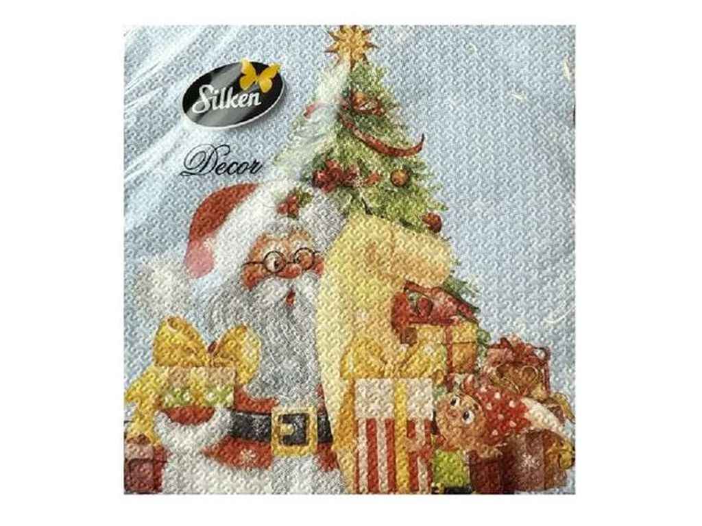 Серветки з малюнком Новий Рік 12шт паперові ПОДАРУНКИ ВІД САНТИ 33*33 2шар ТМSILKEN