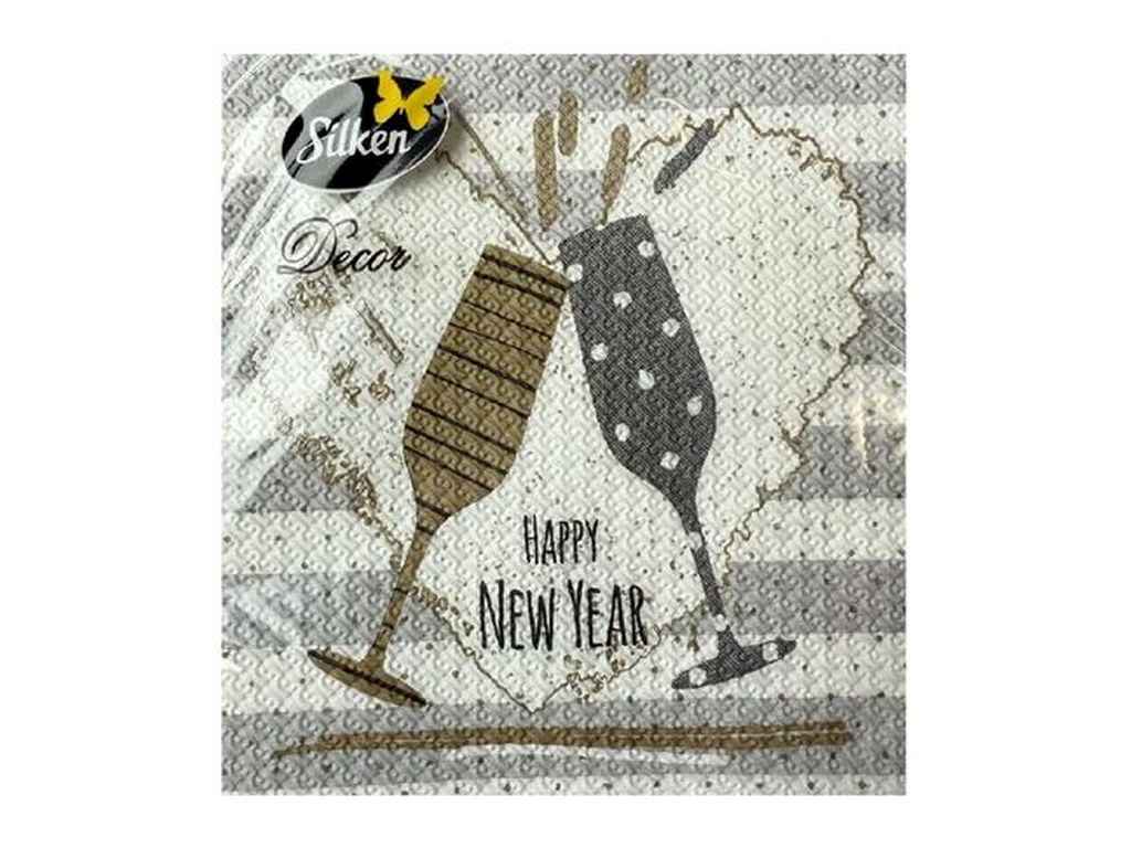 Серветки з малюнком Новий Рік 12шт паперові HAPPY NEW YEAR МІКС 33*33 2шар ТМSILKEN