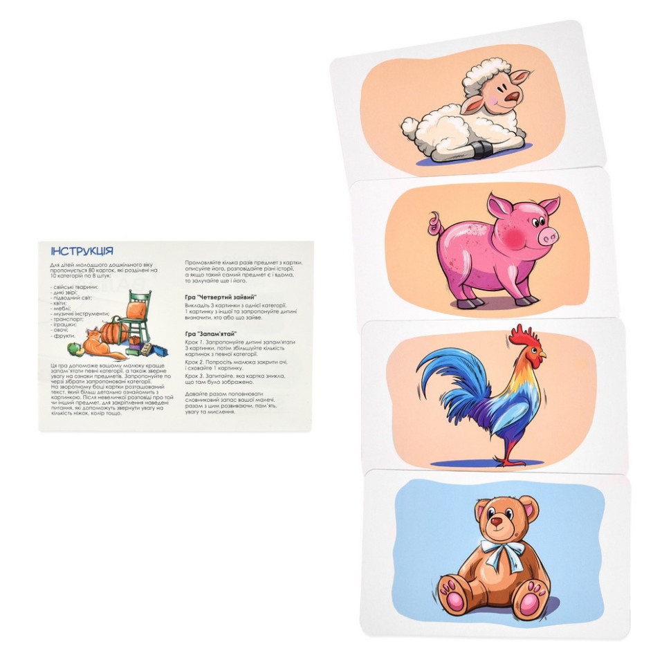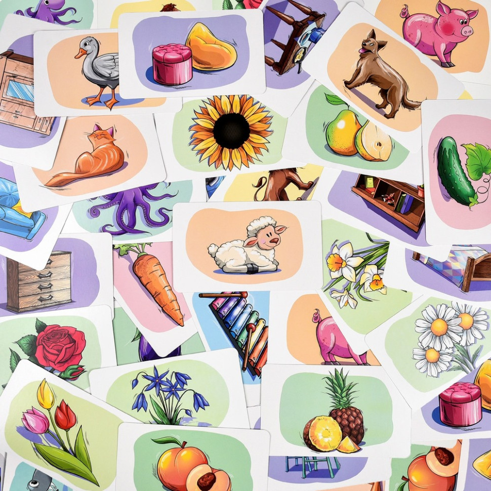 Настольная игра «Умный чемодан. Мир вокруг»Познавать мир вокруг легко с творческим набором «Умный чемодан». Комплект из 80 различных карточек познакомит ребенка с домашними животными, дикими зверями, цветами, музыкальными инструментами, транспортом, мебелью, игрушками, овощами, фруктами и элементами подводного мира. Двусторонние карточки содержат яркое изображение, развернутую информацию на обратной стороне, а также вопросы о различных признаках. Подходит для детей старше 3 лет. Идеально для совместных занятий с родителями, воспитателями или учителями.Комплектация: коробка (изготовлена из картона), карточки - 80 шт. (изготовлены из картона), инструкция (изготовлена из бумаги).Размер: 22,5х19х3,8