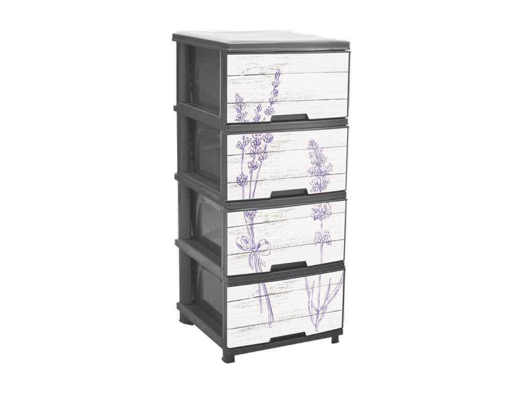 Комод на 4 шухляди з декором, сірий, Лаванда, 09381, Д*Ш*В=0,455*0,39*0,955 Вага=5,083кг (1 шт.)