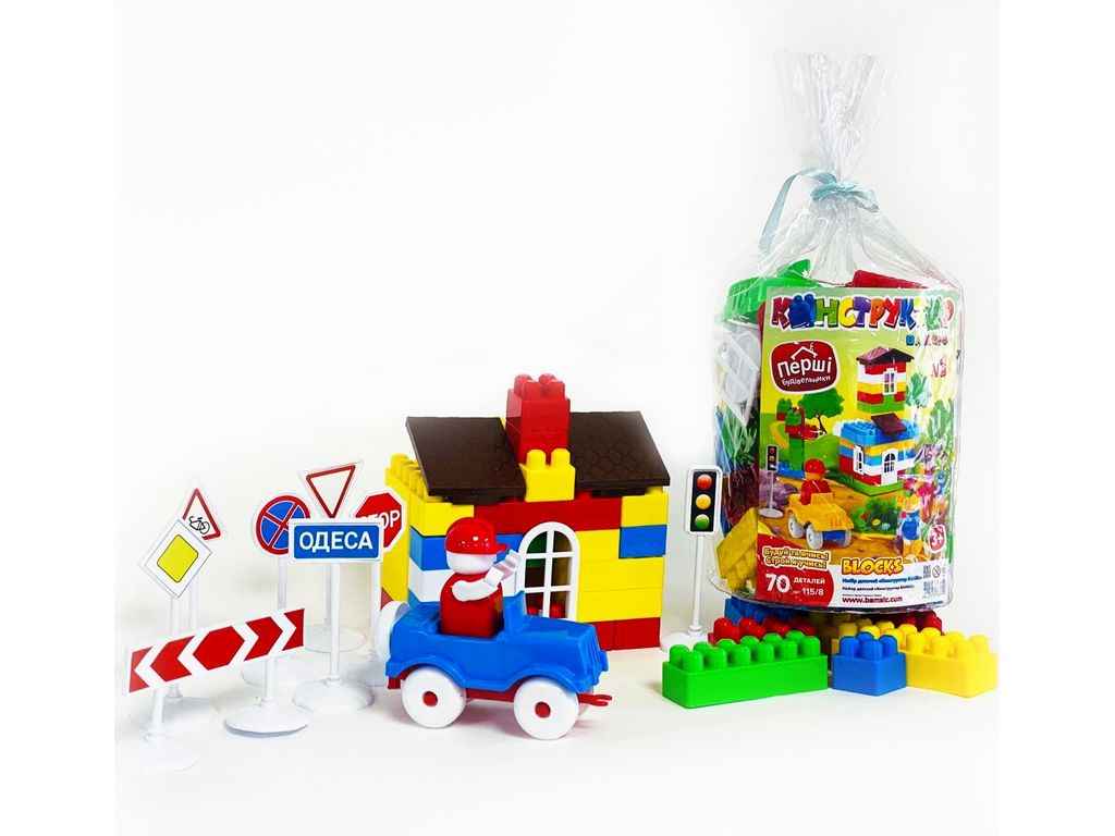 Набір дитячий “Конструктор №1” – це яскравий набір із 70 деталей включає все необхідне для створення будинків, машинок та цілих міських кварталів. У комплекті передбачені дорожні знаки, що дозволяє дітям не лише будувати, а й розігрувати захоплюючі сюжетні ігри.