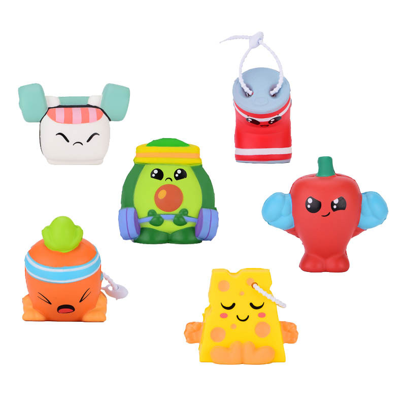 Познакомьтесь со СПОРТИВНЫМИ Вкусами - серией жмакальных игрушек-сквишей, сочетающих спорт и еду в веселом стиле. Каждый герой имеет свой характер и любимый вид спорта: морковка оттачивает выносливость, перец выходит на ринг, авокадо демонстрирует силу, сашими поднимает гантели, сыр медитирует, а баночка напитка качает пресс.