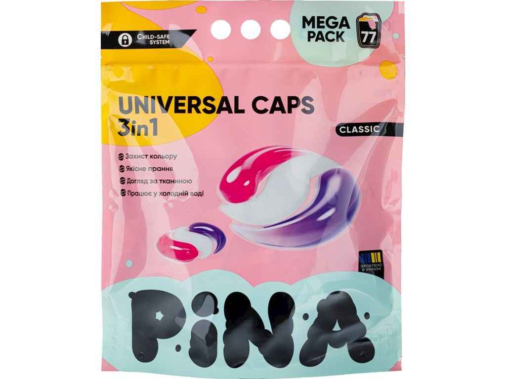 Капсули для прання 77шт Universal Classic дой-пак ТМ PINA