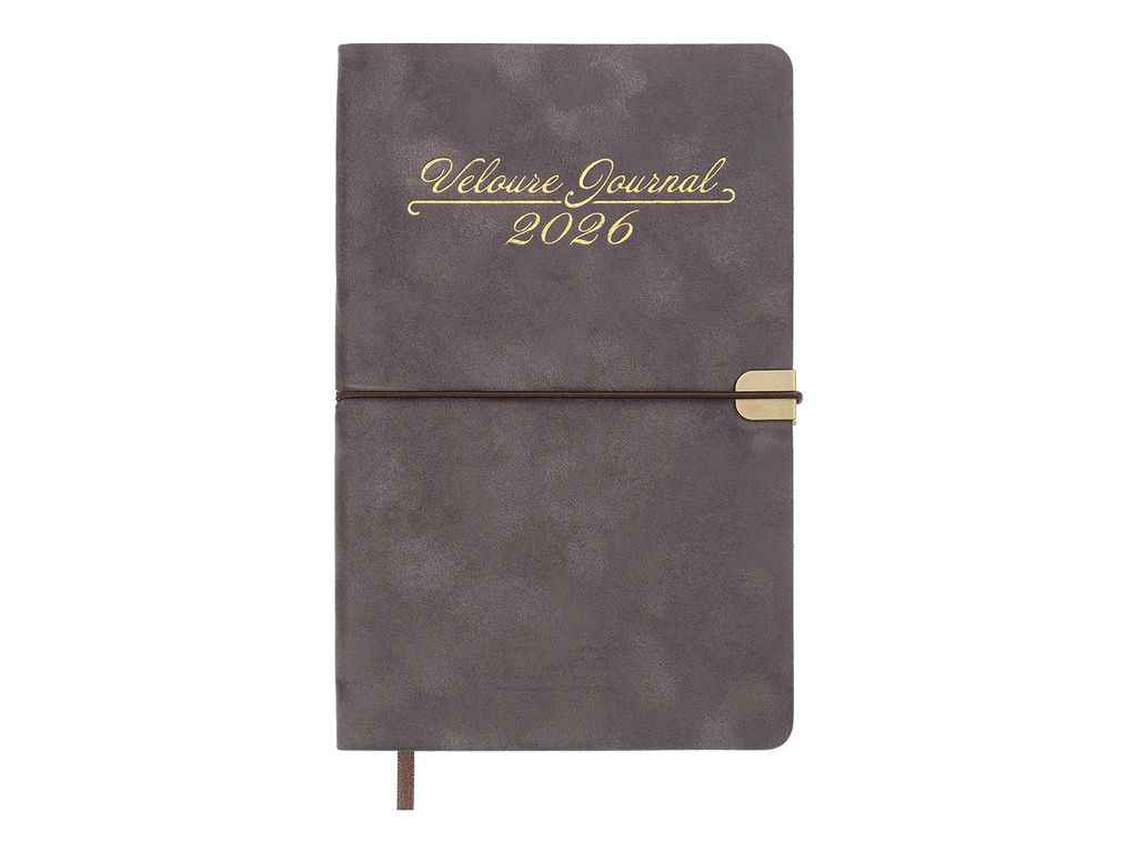 Гнучка обкладинка щотижневика VELOUR виконана з штучної шкіри з виразним оксамитовим покриттям. Дві функціональні шильди на лицьовій та зворотній стороні обкладинки з поглибленнями для поперечної гумки забезпечують зручну та надійну фіксацію щоденника в закритому стані. Дизайн гармонійно доповнює та збагачує тонований срібним кольором зріз внутрішнього блоку та тиснення срібною фольгою року і напису на лицьовій стороні обкладинки.