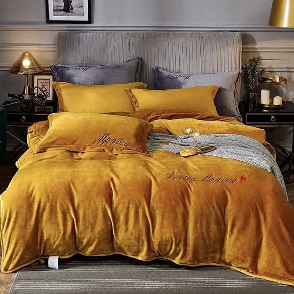 Комплект постільної білизни велюр Євро РР (Жовтий) Monika Сумка