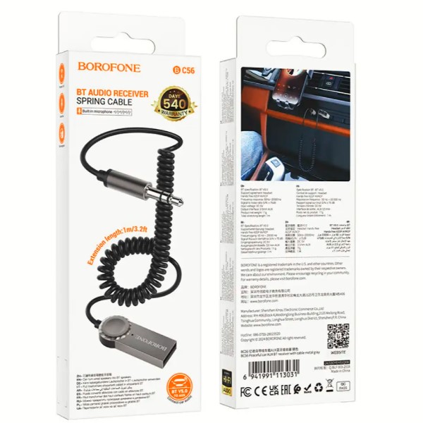 BOROFONE BC35 Wideway, автомобильный AUX BT ресивер, 3.5мм выход, батарея 150mAh для 10 часов музыки и звонков