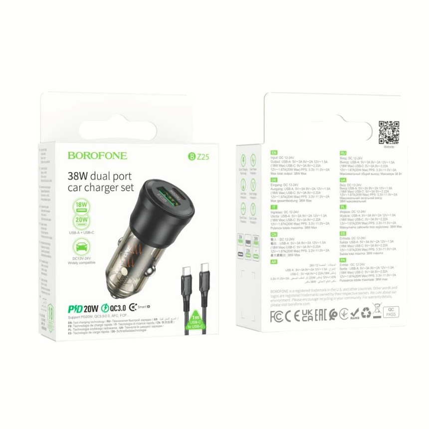 АЗП BOROFONE BZ29B (PD36W+QC3.0/2Type-C) + Type-C-Type-C (Чорний)